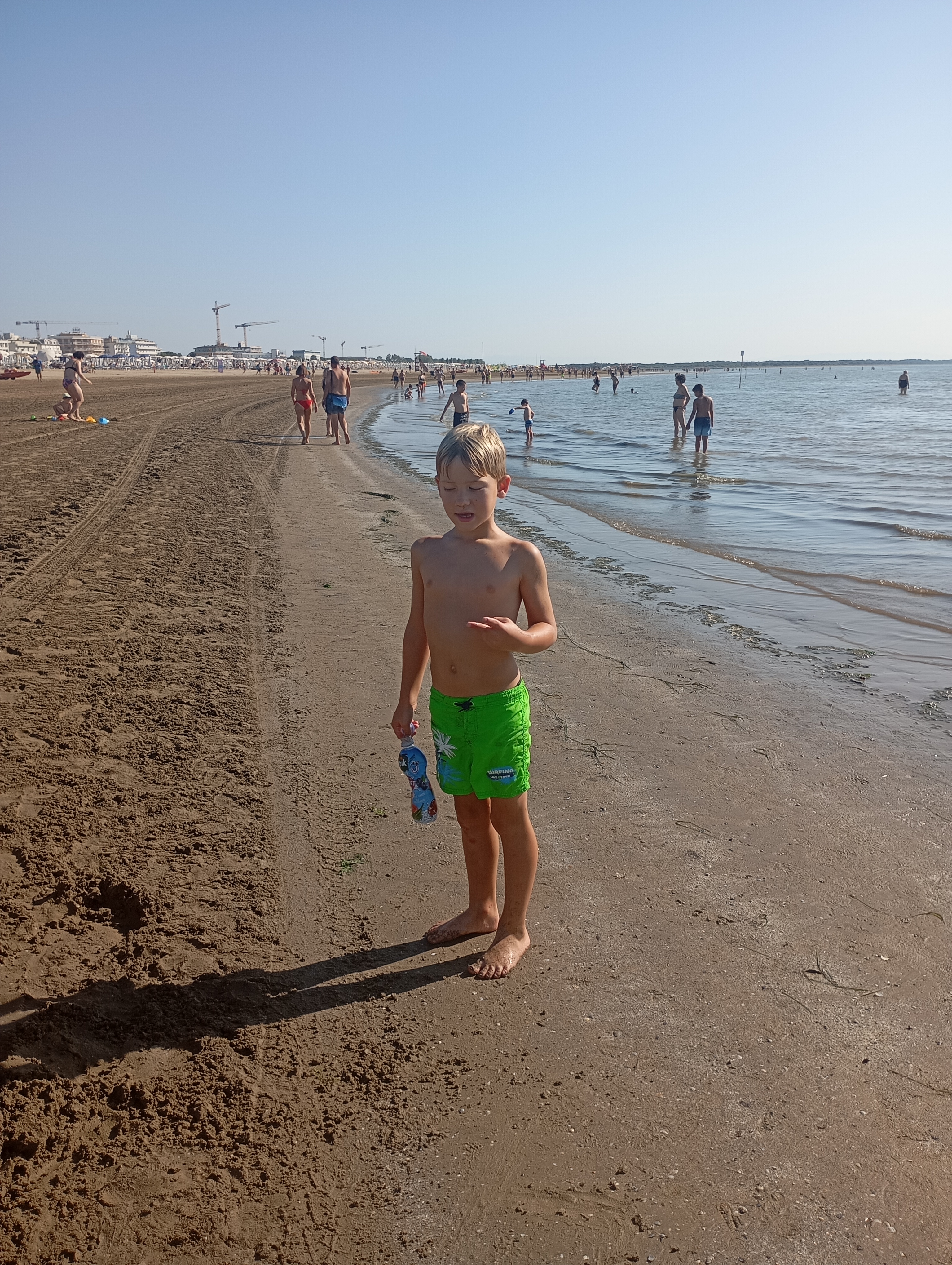 Moře je v Caorle pro děti naprosto ideální. Dlouho a dlouho jdete, vodu jen do pasu. Já trávila v moři většinu času tím, že jsem seděla po krk ve vodě a lovila mušle. To bavilo i děti. Byly z moře nadšené.